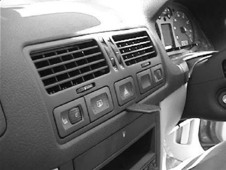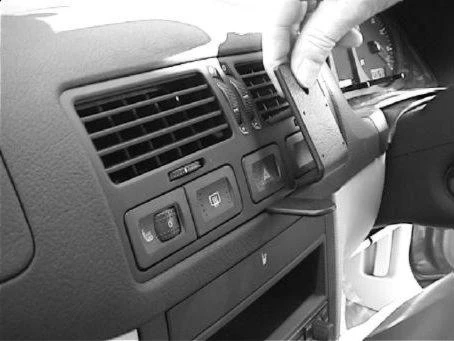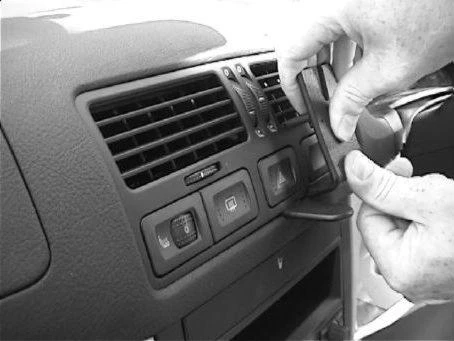 Press the lower part of the ProClip into the gap at pos. 1 between the dashboard and the frame surrounding the air vents. Press until yoou see or hear/feel it snap into place.