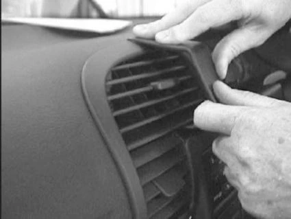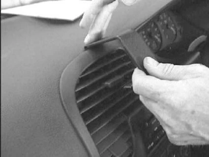 Hook the upper part of the ProClip, with angle, into the gap at pos. 1 between the frame surrounding the air vent and the dashboard.
