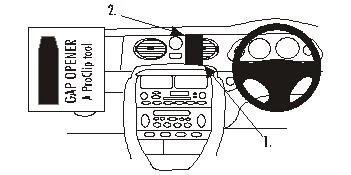 Press the upper part of the ProClip, with angle, into the gap at pos. 2 between the panel surrounding the air vents and the dashboard overhang.