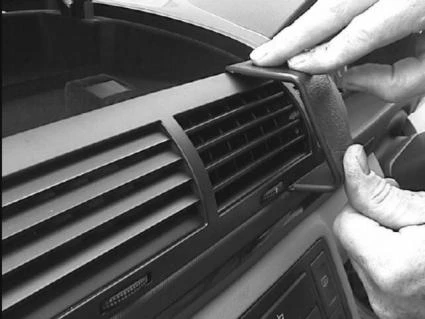 Press the lower part of the ProClip, with groove, into the gap at between the dashboard and the frame surrounding the air vents.