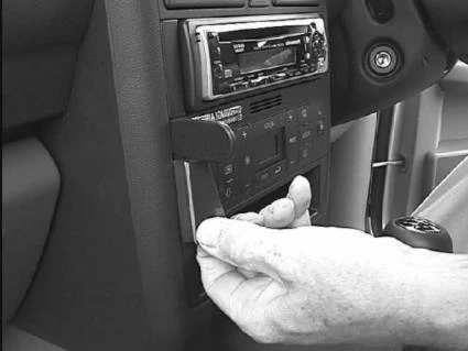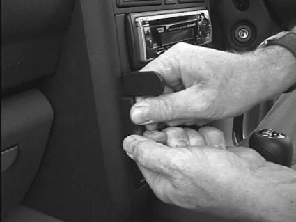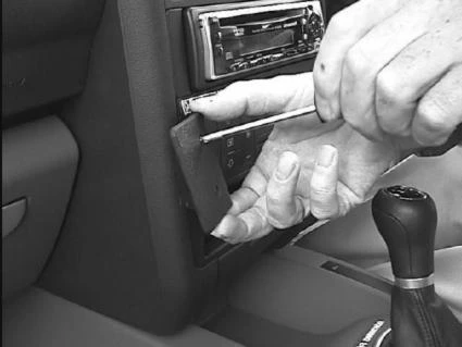 Attaching piece. Part 2. ProClip faceplate. Press the thin end of the enclosed gap opener into the gap between the control panel and the surrounding frame in the same position as in the picture.