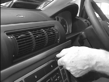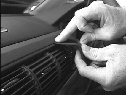 Press the upper part of the ProClip, with adhesive tape, into the gap between the air vent and the surrounding frame. Pull out the gap opener.