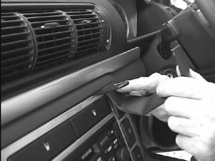 Press the thin end of the enclosed gap opener into the gap between the dashboard and the frame surrounding the control panel. Peel off the cover of the adhesive tape on the ProClip.
