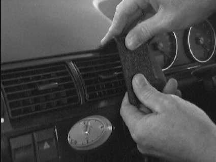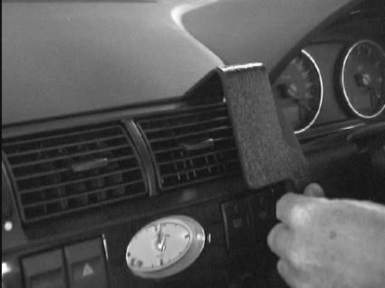 Press the lower part of the ProClip, with groove, into the gap between the control panel and the dashboard. If any of the gaps is too tight, press the thin end of the enclosed gap opener into the gap to widen the gap.