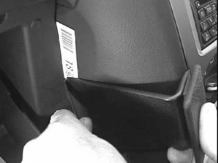 Press forward on the ProClip so the angled edge of the left part snaps into the gap between the glove compartment and the dashboard. Close the glove compartment.