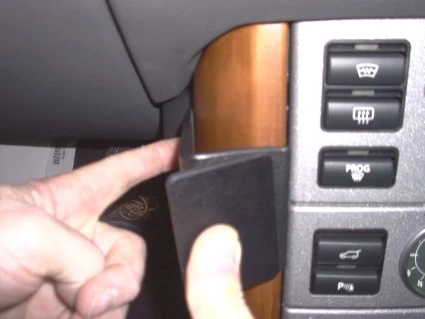 Press forward on the ProClip so the long left edge hooks behind the frame surrounding the control panel.