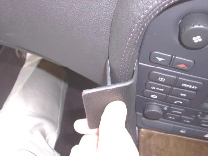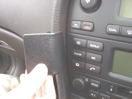 Press forward on the ProClip, alternately on the left/right side, so the left edge hooks into the gap between the dashboard and the frame surrounding the control panel.