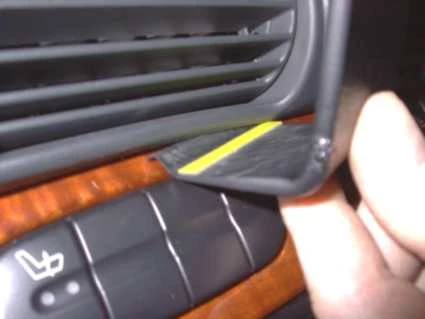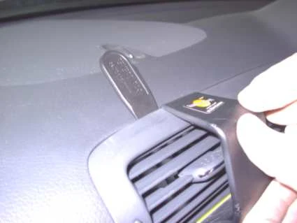 Press the lower part of the ProClip, with adhesive tape, into the gap between the control panel and the frame surrounding the air vent.