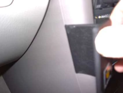 Peel off the cover of the adhesive tape on the ProClip. Press the upper part of the ProClip towards the console padding and at the same time: press the grooved edge on the upper part into the gap between the console edge and the climate control panel.