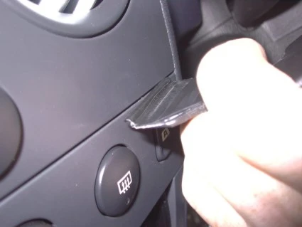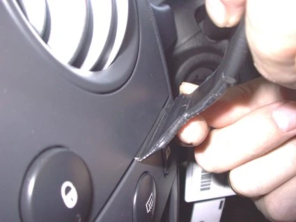 Press the thin end of the enclosed gap opener into the gap in the control panel above the air vent to widen the gap. Press the upper part of the ProClip (with adhesive tape) into the gap next to the gap opener. Pull out the gap opener.