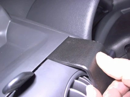 Peel off the adhesive tape cover on the ProClip. Press the curved edge of the lower part of the ProClip into the gap in the control panel below the air vent.
