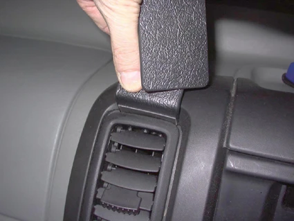 Press the lower part of the ProClip, with adhesive tape, into the gap between the dashboard and the air vent frame.