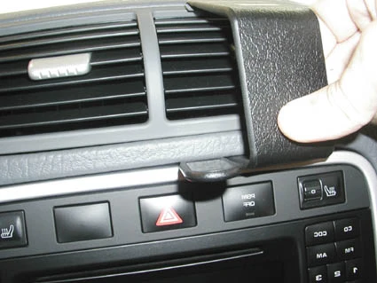 Press the thin end of the enclosed gap opener into the gap between the air vent frame and the dashboard, to widen the gap. Press forward on the upper part of the ProClip so the angled edge snaps into the gap next to the gap opener.