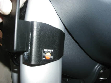 Hold the ProClip with both hands and hook the angled edge on the left side of the ProClip over the console edge but DON'T attach the tape yet. Slide the ProClip upwards so the right side of the ProClip goes into the gap between the console edge and the dashboard panel.
