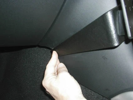 Press firmly forward, towards the sidewall, to make sure the angled edge is properly hooked over the console edge.