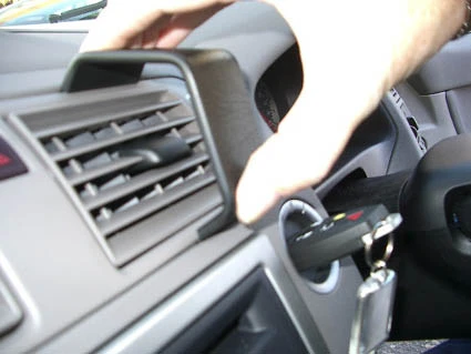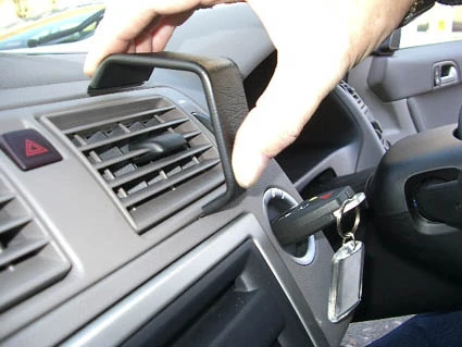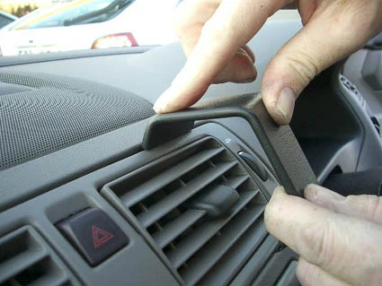 Press the grooved edge on the lower part of the ProClip into the gap between the frame surrounding the air vent and the dashboard.