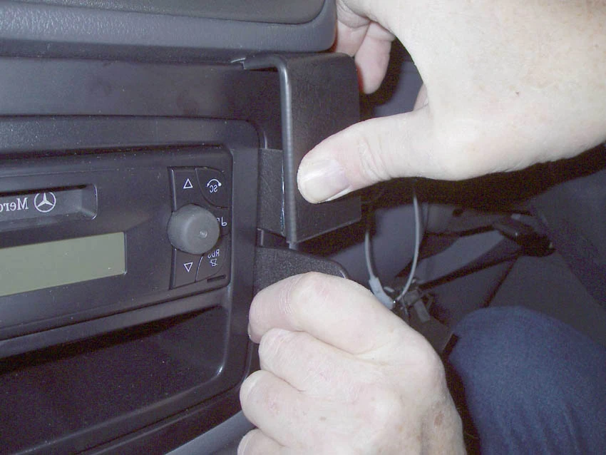 Press the gap opener into the gap between the panel and the frame surrounding the stereo. Press forwards on the lower part of the ProClip so it goes all the way into the gap next to the gap opener. Pull out the gap opener.