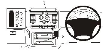 Press the thin end of the enclosed gap opener into the gap between the dashboard and the center panel to widen the gap. Peel off the adhesive tape covers on the ProClip. Place the ProClip as shown in the picture.