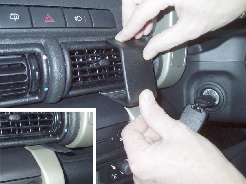 Press the gap opener into the gap next to the ProClip, between the air vent and the surrounding frame. Press downwards on the angled upper edge of the ProClip so it goes all the way into the gap. Pull out the gap opener.