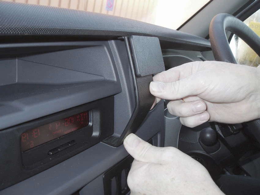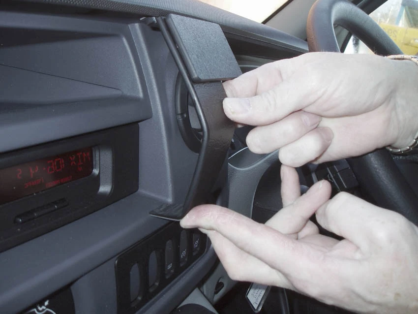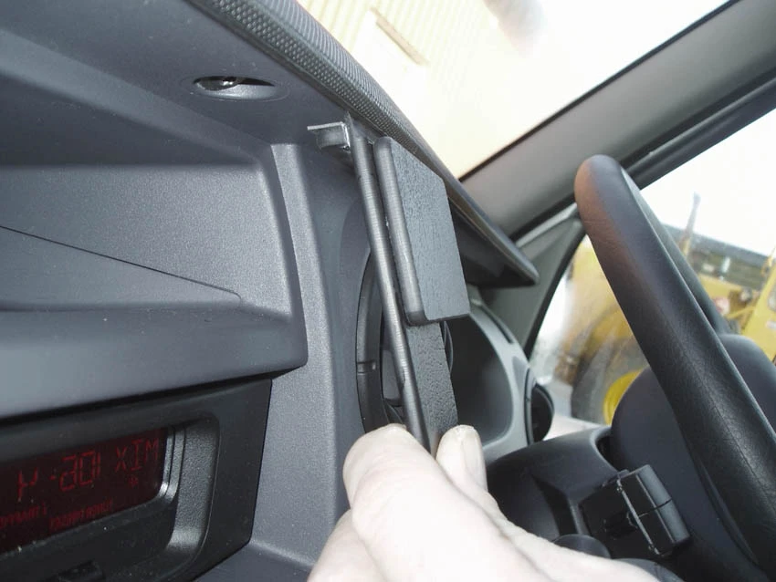 Press the lower part of the ProClip into the gap between the stereo and the surrounding frame. Press forwards on the lower part of the ProClip until it stops, so it is properly in place.