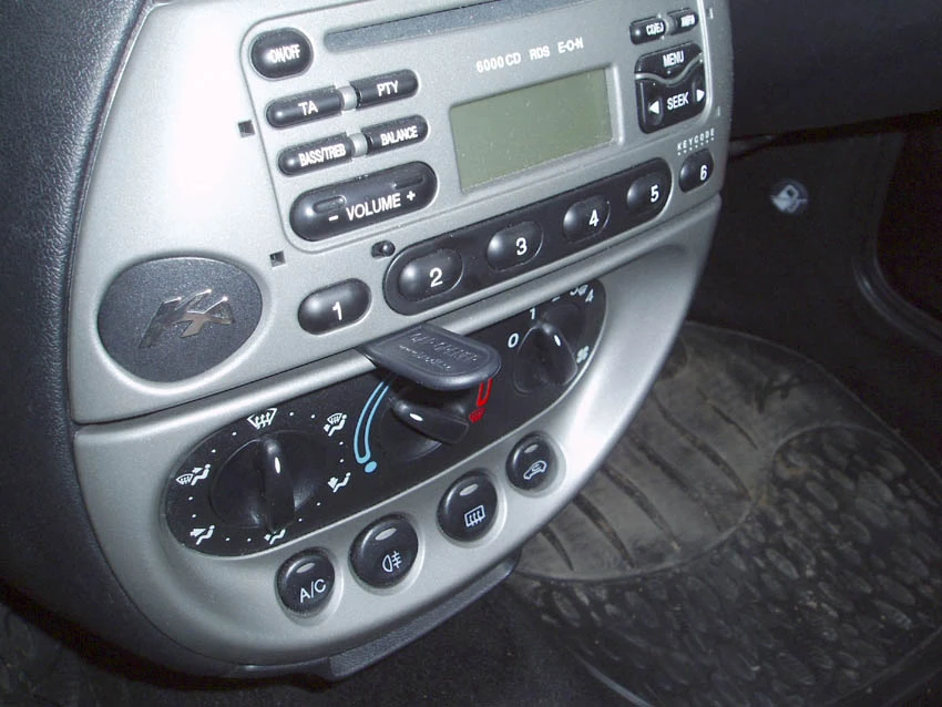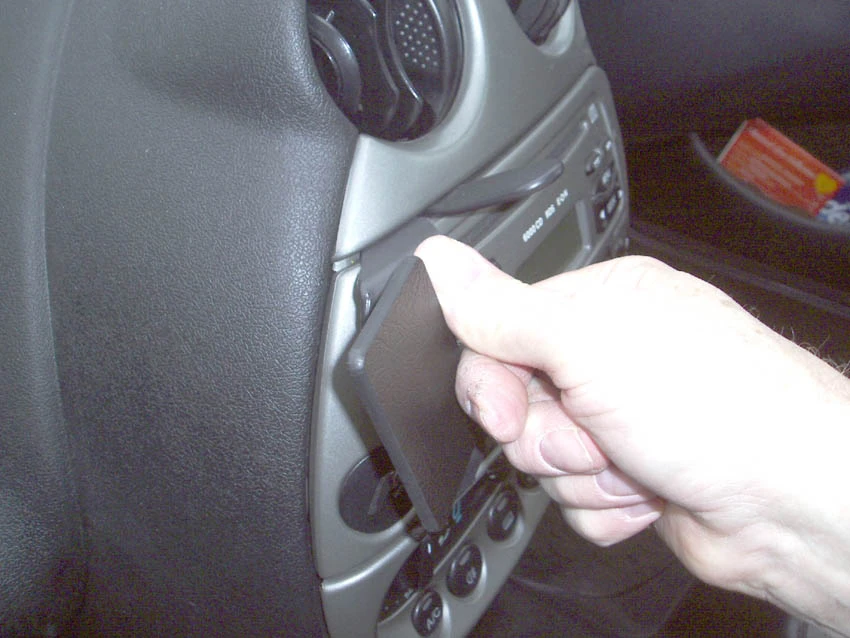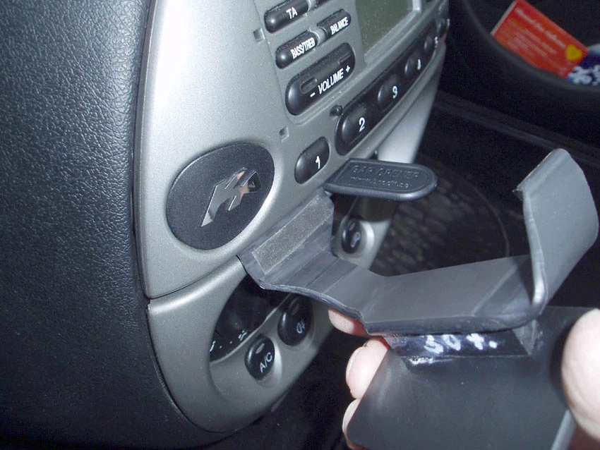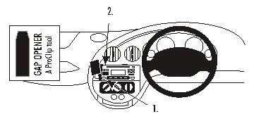 Press the gap opener into the gap between the control panel and the panel below the air vents. Press the upper part of the ProClip into the gap next to the gap opener. Press forwards on the upper and the lower part of the ProClip so it goes all the way into the gap. Pull out the gap opener.
