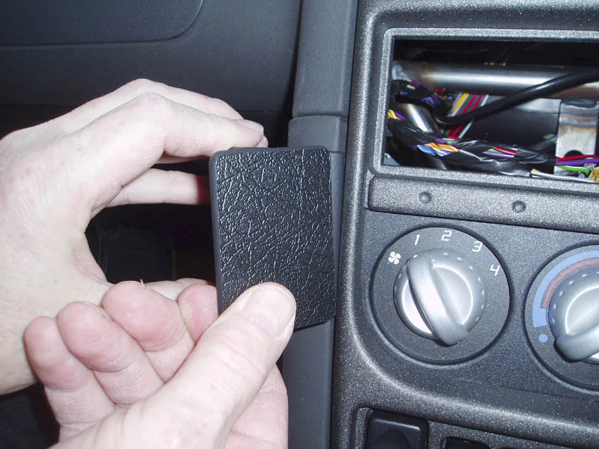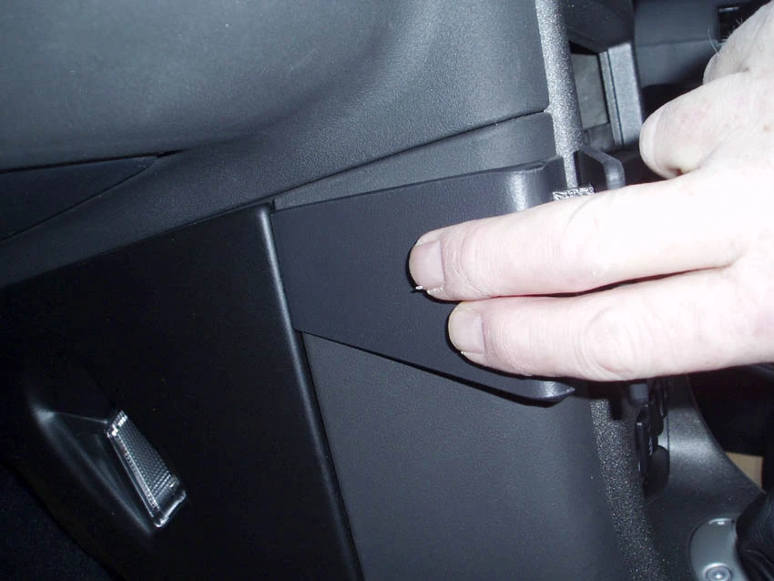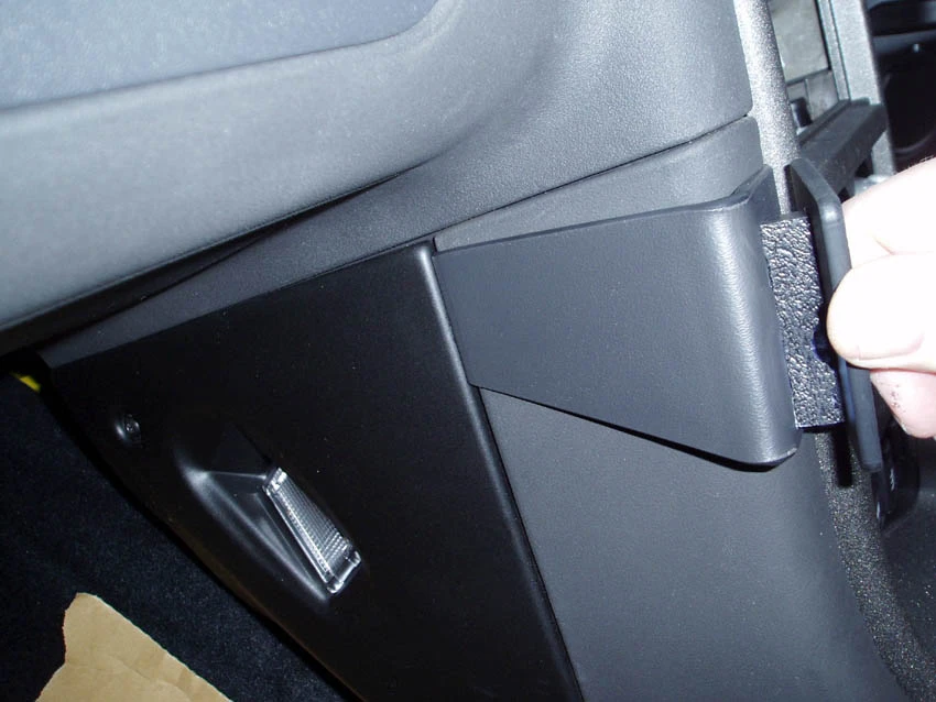 Filp the left part of the ProClip towards the glove compartment so the curved edge on the right part of the ProClip hooks behind the control panel.