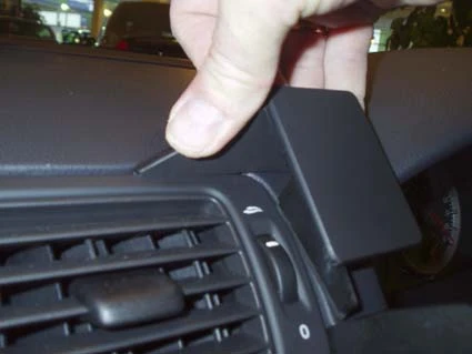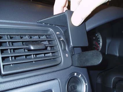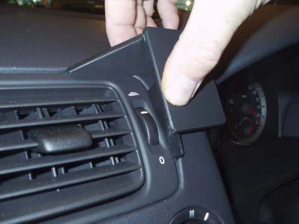 Press forwards on the upper part of the ProClip so the grooved edge snaps into the gap between the frame surrounding the air vent and the dashboard. Press until you hear/feel it snaps into the gap.