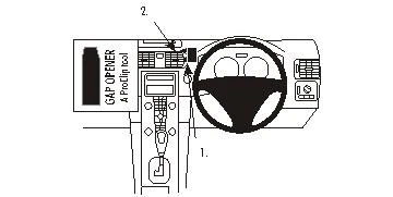 Press the thin end of the enclosed gap opener into the gap between the frame surrounding the air vent and the dashboard, to widen the gap. Press the grooved edge on the lower part of the ProClip into the gap above the gap opener. Press until you hear/feel it snaps into the gap. Pull out the gap opener.