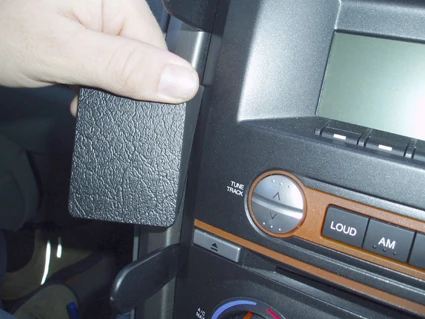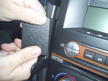 Press the thin ends of the enclosed gap openers into the gap between the control panel and the surrounding frame, to widen the gap. Place the gap openers about 10 cm apart. Peel off the cover of the adhesive tape on the ProClip.