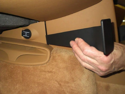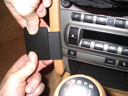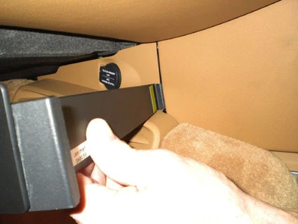 Place your fingers behind the face plate and pull it toward you. While pulling the ProClip towards you, hook the angled edge on the right side of the ProClip over the console edge and press it into the gap between the center console panel frame and the console edge.