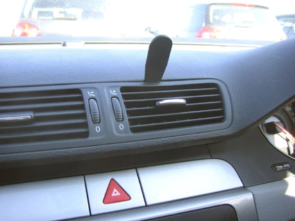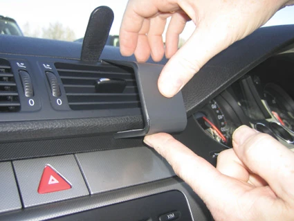 Hook the lower part of the ProClip, with adhesive tape, under the edge of the dashboard surrounding the air vent.