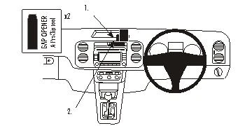 Press both gap openers into the gap between the control panel and the dashboard. Place them about 10 cm apart. Press the lower part of the ProClip into the gap between the gap openers. Pull out the gap openers.