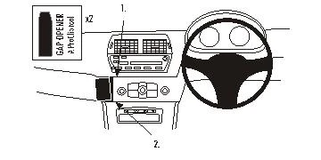 Press the thin ends of the enclosed gap openers into the gap in the dashboard. Place them about 10 cm apart. Peel off the adhesive tape cover on the ProClip.