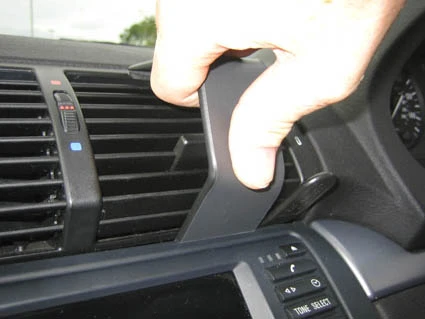 Press the gap opener into the gap between the frame surrounding the air vent and the dashboard. Hook the angled edge on the upper part of the ProClip into the gap next to the gap opener. Pull out the gap opener.