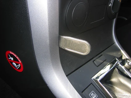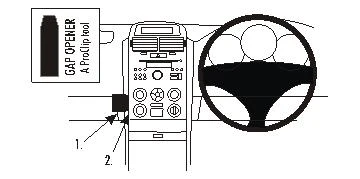 Press the thin end of the enclosed gap opener into the gap between the control panel and the surrounding frame, to widen the gap. Peel off the adhesive tape covers on the ProClip. Open the glove compartment.