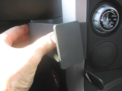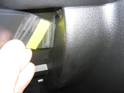 Press the angled edge on the left part of the ProClip into the gap between the glove compartment and the dashboard.
