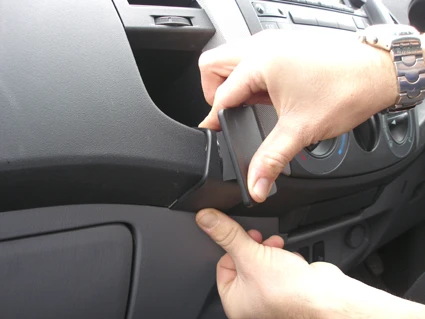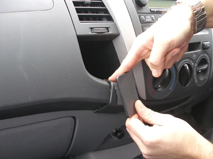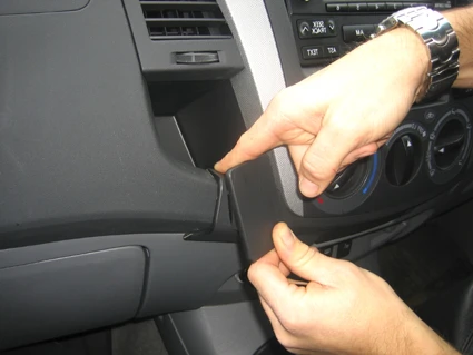 Hook the angled edge on the lower part of the ProClip into the gap in the dashboard.