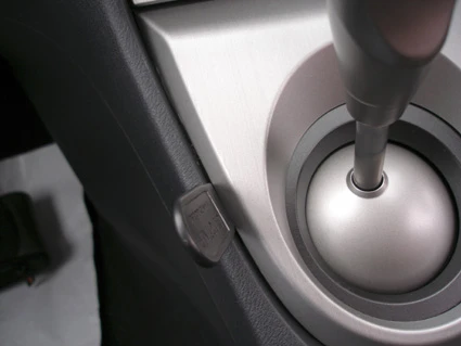 Press the thin end of the enclsoed gap opener into the gap between the console and the panel surrounding the gear shift, to widen the gap. Use the enclosed alcohol pad to clean the surface where the ProClip is to be installed. Peel off the adhesive tape covers on the ProClip.