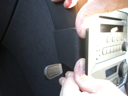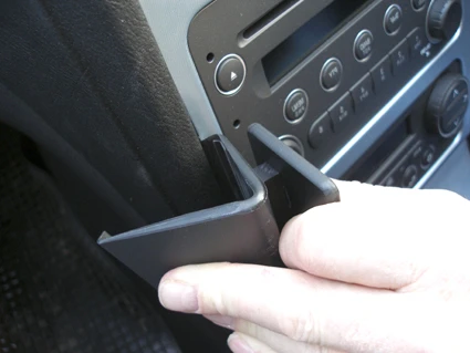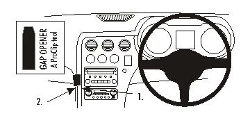 Press the gap opener into the gap between the frame surrounding the control panel and the dashboard. Press forwards on the left side of the ProClip so the angled edge on the left part of the ProClip hooks into the gap above the gap opener. Pull out the gap opener.