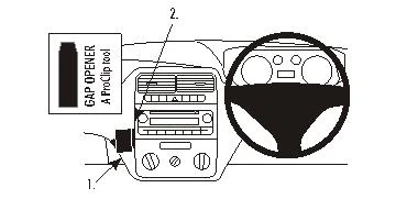 Press the gap opener into the gap in the dashboard sidewall. Press forwards on the left side of the ProClip so the angled left edge hooks into the gap above the gap opener. Pull out the gap opener.