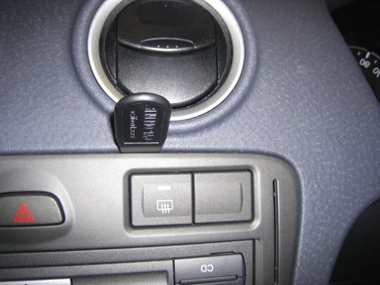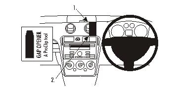 Press the thin end of the enclosed gap opener into the gap between the control panel and the dashboard, to widen the gap. Open the coin compartment on top of the dashboard. Peel off the cover of the adhesive tape on the ProClip.