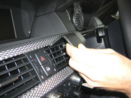 Peel off the adhesive tape covers on the ProClip. Hook the grooved edge on the upper part of the ProClip into the upper edge of the air vent.