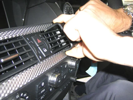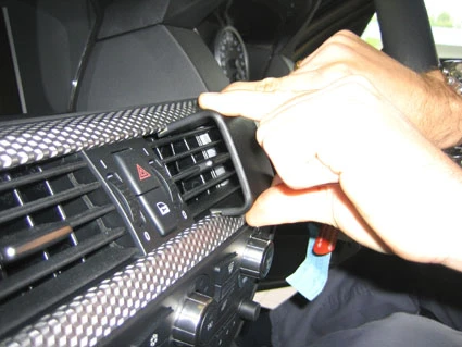 Press the lower part of the ProClip forwards so the grooved edge hooks into the lower edge of the air vent.