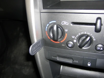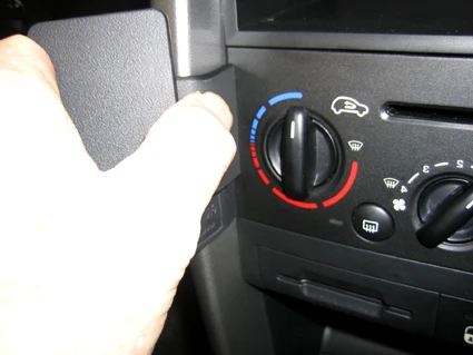 Press the gap opener into the gap between the frame surrounding the control panel and the dashboard. Press forwards on the left side of the ProClip so the angled edge on the left part snaps into the gap above the gap opener. Pull out the gap opener.