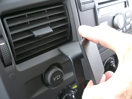 Press forward on the lower part of the ProClip so the angled lower edge hooks into the gap between the climate control panel and the surrounding frame.