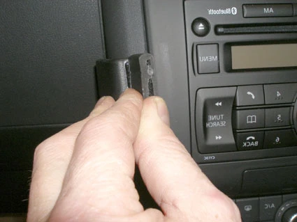 Use the enclosed alcohol pad to clean the area where the ProClip is to be installed. Peel off the adhesive tape covers on Part 1. Press the angled edge on Part 1 into the gap between the control panel and the surrounding frame.