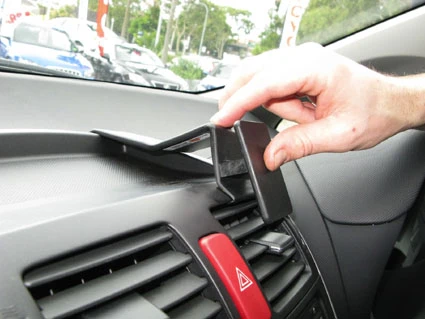 Press the lower part of the ProClip downward and hook the angled edge under the upper edge of the air vent.