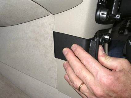 Press forward on the left side of the ProClips o the angled edge on the left side hooks behind the center console edge. Press the left edge toward the center console so it hooks into place properly.