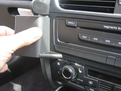 Press forward on the lower part of the ProClip so the grooved edge goes all the way into the gap. Press until you hear/feel it snaps into place and the adhesive tape attaches to the control panel. Pull out the gap opener.