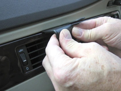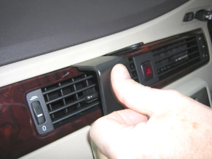 Press the gap opener into the gap between the frame surrounding the air vent and the dashboard. Press forwards on the upper part of the ProClip so the grooved edge goes into the gap next to the gap opener.